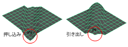 方向を設定して、ツールのシェイプにメッシュを押し込んだり引き出したりできます。