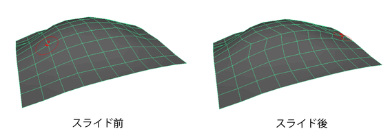 ジオメトリのスカルプト ツール(Sculpt Geometry Tool)を使用するときには、作業しているサーフェスタイプ(NURBS、ポリゴン、サブディビジョン サーフェス)に従って、頂点またはコントロール頂点(CV)のどちらかが影響を受けます。ここでは 2 つの用語を同義的に使用し、同じ影響を受けることを示しています。
