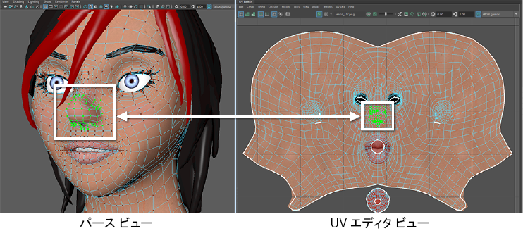 UV エディタ(UV Editor)により、2D ビュー内のポリゴン/NURBS/サブディビジョン サーフェスの UV テクスチャ座標を表示し、インタラクティブに編集することができます。UV シェルの使用方法の詳細については、下記の関連項目を参照してください。これらのツールを一緒に使用する方法については、このビデオもご覧ください。