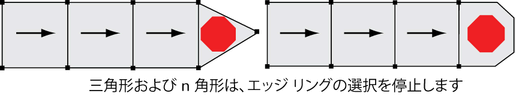 - エッジを接続するフェースは、4 辺(四角形)である必要があります。