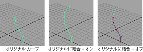 カーブの延長部分をオリジナル カーブにアタッチします。オフの場合は、オリジナル カーブとカーブの延長部分が別々のオブジェクトになります。したがって、カーブの延長部分を単独で操作することができます。