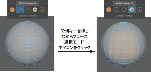 モデリング ツールキット(Modeling Toolkit)で、[Ctrl]を押しながら選択モード アイコンをクリックします。