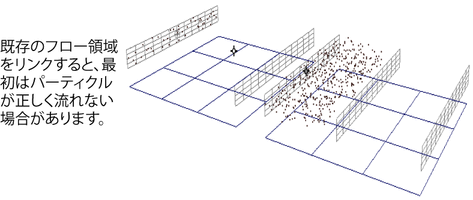 1 つのサーフェスごとに 1 つのフロー領域が作成されますが、最初はパーティクルが正しく流れない場合があります。パーティクルの流れを補正するには、次の手順を実行します。