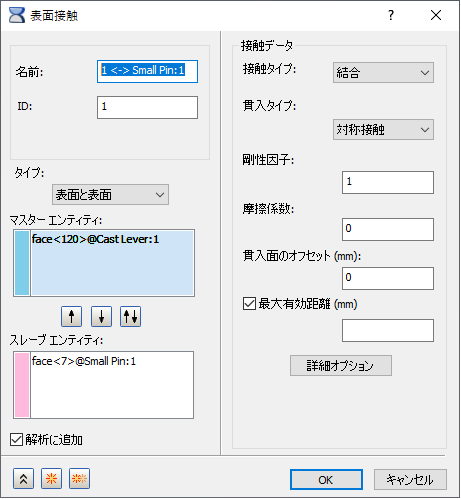 [表面接触]ダイアログ ボックスには、接触を定義するオプションが 2 つあります。