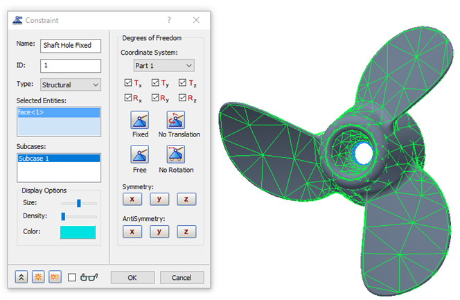 条件(選択したサーフェス上の節点の 6 つの自由度がすべて拘束されている)に設定されています。
