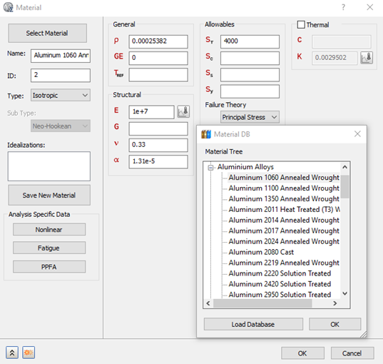 - [材料データ ベース]ダイアログ ボックスには、使用可能な材料が表示されます。[データベースをロード]をクリックします。