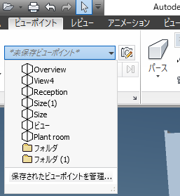 [ビューポイント]タブ > [保存、ロード、再生]パネル > [現在のビューポイント]ドロップダウン リストをクリックし、保存されているビューポイントを選択します。