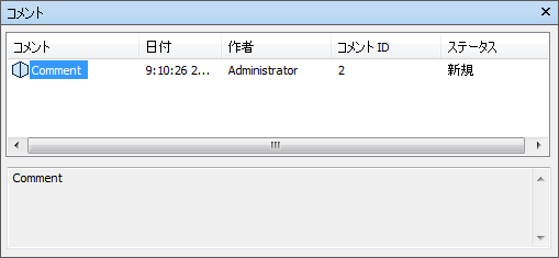 - [コメント]ウィンドウで、コメントを入力します。コメントには、既定で[新規]ステータスが割り当てられます。