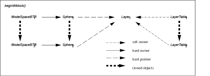 You must pass in the database as the owner of an object when you are copying an entity that references a symbol table record. For example, suppose you are calling wblockClone() on a sphere object. A block table record is the hard owner of this sphere object. The sphere object contains a hard reference to the layer table.