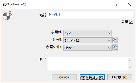 - CAD ビューにデータムを表示する場合、表示 を選択します。