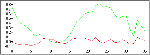 - グラフ - 赤色のラインで、計算後の偏差を表示します。例: