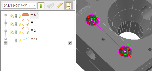 CAD ビューに表示されている全アイテムのプローブパスの表示方法