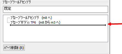 - プローブツールアセンブリからパーツを削除するには、プローブツールアセンブリ リストから当該パーツを選択し、パーツ削除 をクリックします。