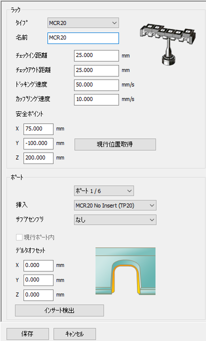 2. ラックの編集が終了したら 保存 をクリックし、ダイアログを閉じます。