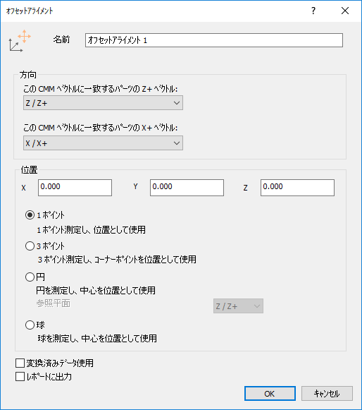 注: オフセット アライメントは、CNC マシンおよび手動マシンの検査を作成する場合にのみ使用できます。