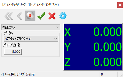- 補正なし - プローブ位置にスタイラス中心を戻します。