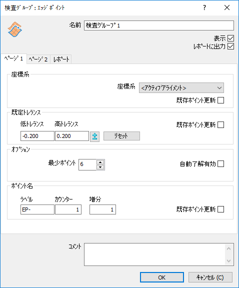 [検査グループ: エッジポイント]ダイアログを使用し、オンザフライ エッジ グループの詳細を指定します。