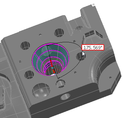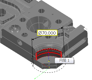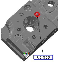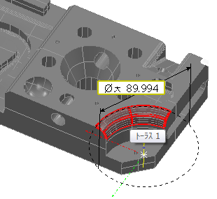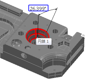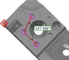 参照ポイントと、距離、半径、角度寸法のラベルの例を示します。