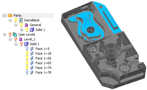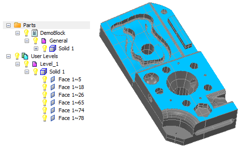 下に示す例では、Level_1 のフェース 1 ~ 5 およびフェース 1 ~ 78 が非表示になります。