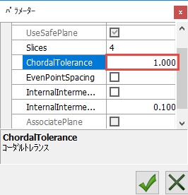 ポイント密度を上げる場合、ChordalTolerance により小さな値を入力します。