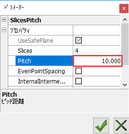 パラメーター ダイアログの値を増減し、スライス 数、および、ポイント 数を変更します。