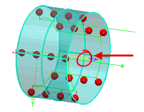 ワイヤーフレーム チェッカーを使用してアイテムを作成すると、PowerInspect は、CAD モデルからアイテムの方向ベクトルを取得します。ベクトルは、CAD ビューに黄色の矢印で表示されます。例: