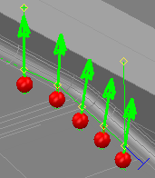 で、フィーチャーの方向沿いに移動して作成されます。または、サーフェス検査グループの最初か最後のポイントを取得し、検査ダイアログで指定された安全高さの距離で、サーフェス検査グループの最初か最後のポイントのベクトル沿いに移動して作成されます。