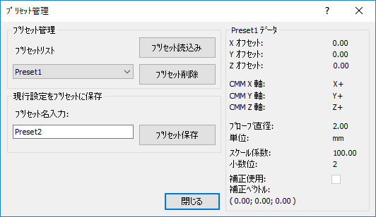 - プリセット管理 をクリックし、プリセット管理 ダイアログを表示します。