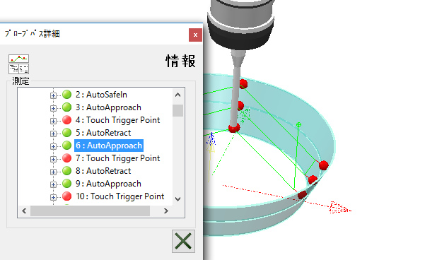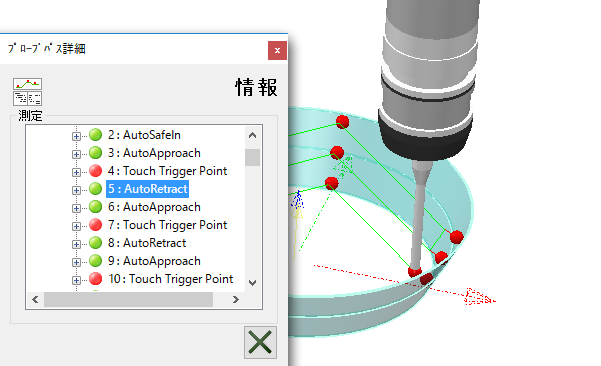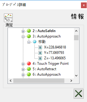 ダイアログを使用し、プローブパスの詳細表示、および、各移動のステップ表示を行います。