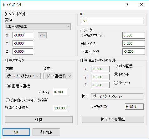 オプション ダイアログで 投影先のサーフェス名をポイント名の接頭辞として使用 が選択されている場合は、自動的に投影先のサーフェス名に基づいた名前になり、ID を変更することはできません。