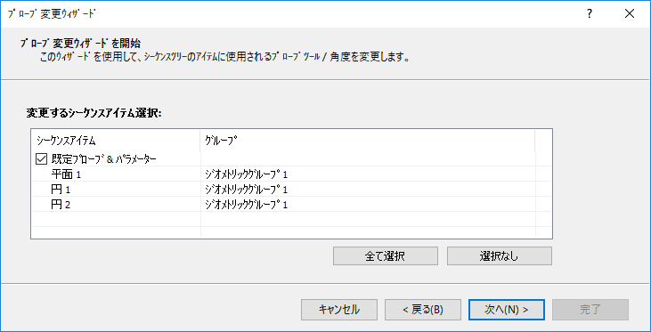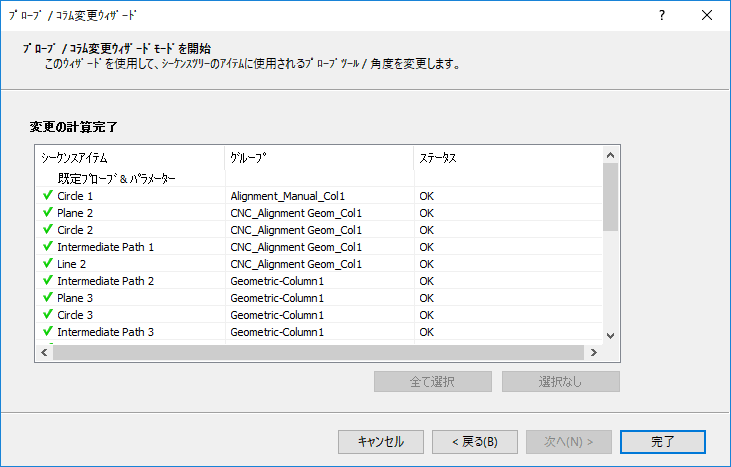 - [プローブパス]タブ > [ツール]パネル > [プローブ変更ウィザード]をクリックします。[プローブ変更]ウィザードが表示されます。