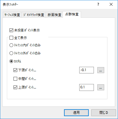 - トレランス外ポイントのみ - トレランス外のポイントを表示します。