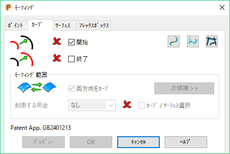 次で制限 - ドロップダウンリストからオプションを選択して、カーブ、または、サーフェスでモーフィング範囲を制限します。次のオプションがあります。
