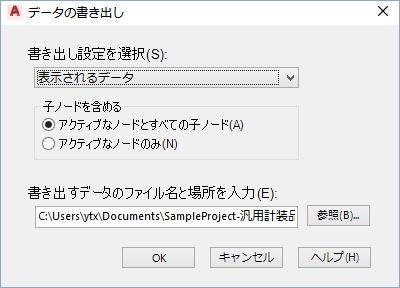 書き出し処理時に使用されるファイル パスとファイル名が表示されます。既定のファイル パスとファイル名が表示されるので、それを受け入れるか変更することができます。