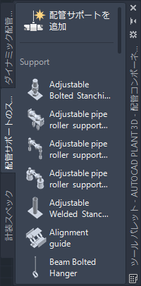プロジェクトの配管サポートスペックからサポートを追加するには