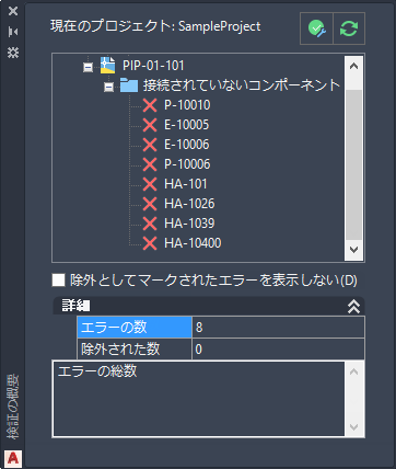 3D モデルの接続されていないパーツ、プレースホルダ パーツ、プロパティの不一致を検証するには(Plant 3D のみ)