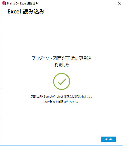 データ マネージャを使用して Excel からデータを読み込み、複数の図面に影響するすべての変更を受け入れると、[Excel 読み込み]ダイアログ ボックスが表示されます。