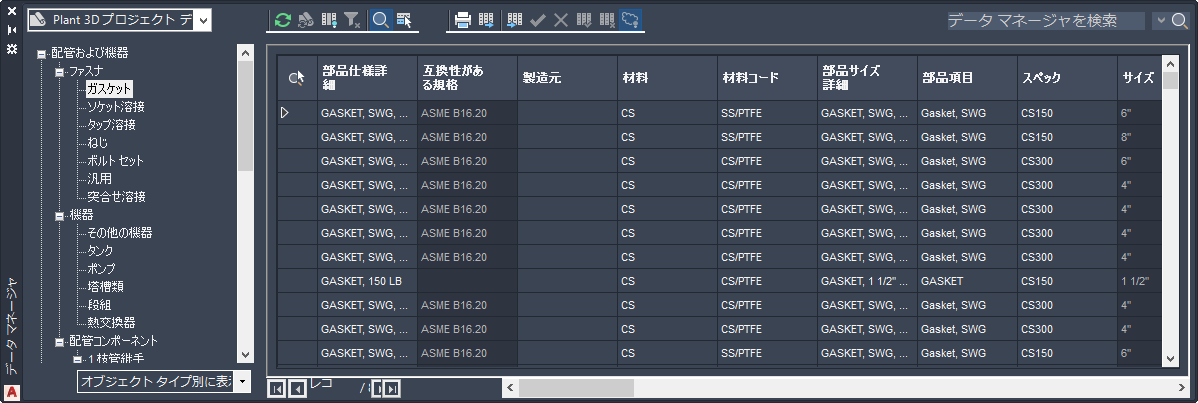 データ マネージャは、Plant データにアクセスし操作するこのとできるツールです。データ マネージャを使用すると、図面とプロジェクト データの表示、変更、書き出し、読み込みや、レポートの生成を行うことができます。