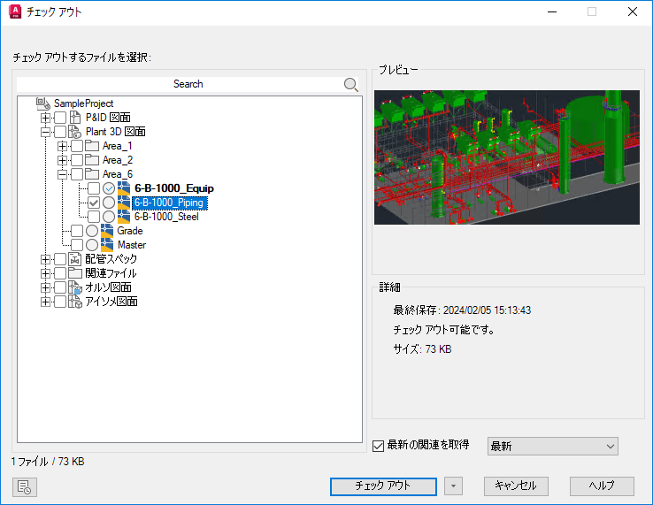 - 選択したファイル(複数可)またはフォルダをチェック アウトするよう選択します。