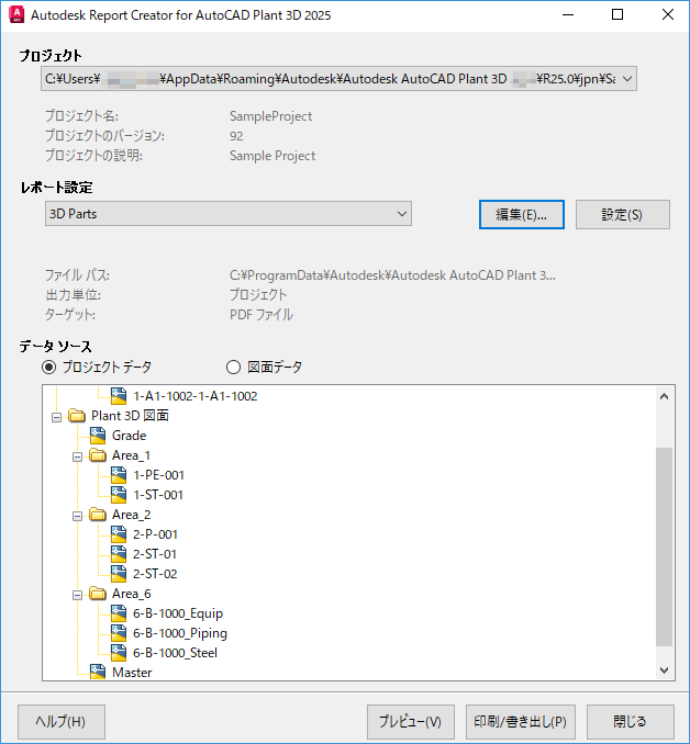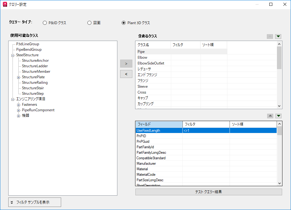 - [クエリー タイプ]で、[P&ID クラス]、[図面]、または[Plant 3D クラス]をクリックします。