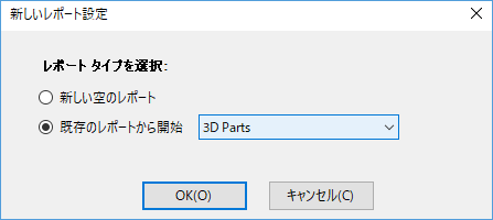 - [新しいレポート設定]ダイアログ ボックスで、[既存のレポートから開始]をクリックし、修正する設定を選択します。[OK]をクリックします。