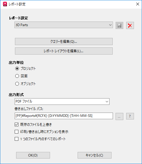 - [レポート設定]ダイアログ ボックスで、次の操作を行います。