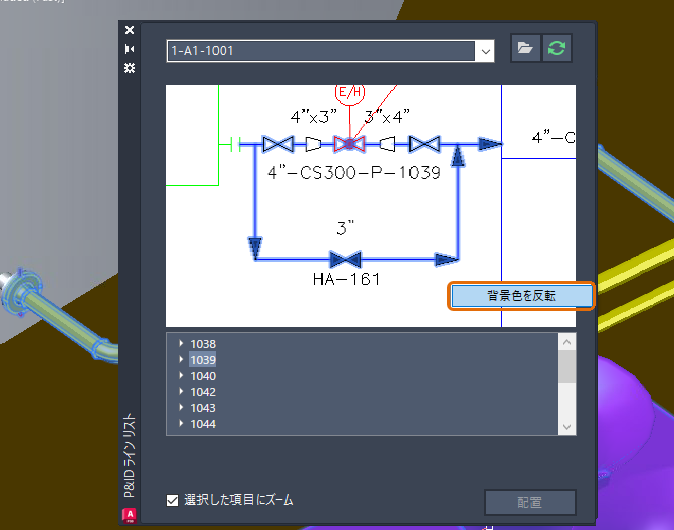 P&ID プレビューの背景色をカスタマイズできます。P&ID プレビューを右クリックし、[背景色を反転]を選択します。