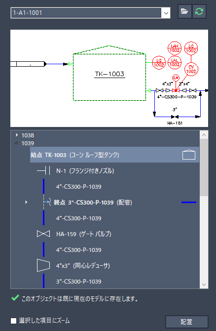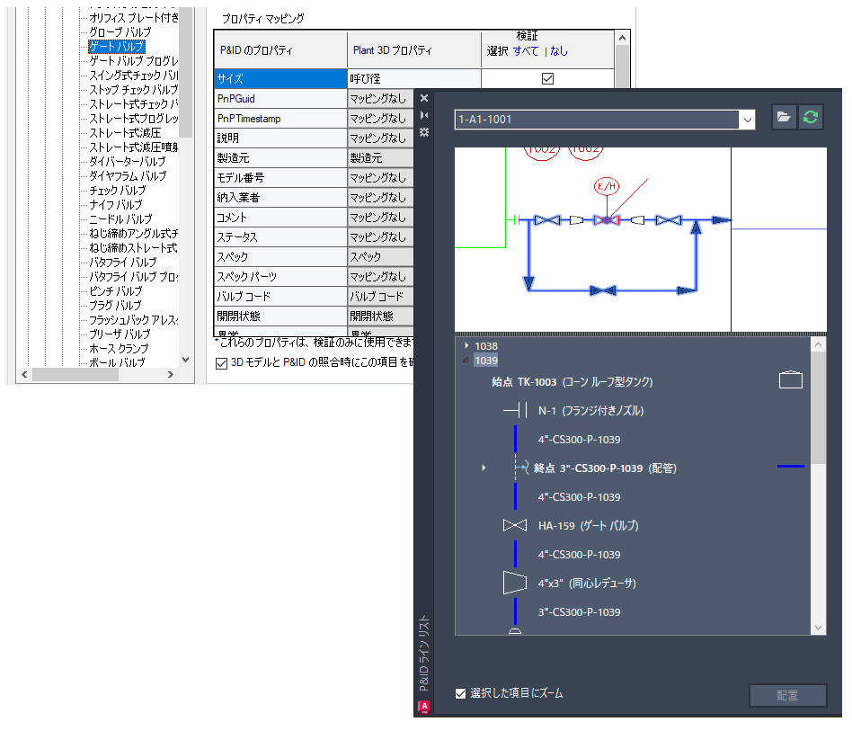 P&ID ライン リスト ウィンドウでは、簡単に使用可能な P&ID オブジェクトを選択し、対応する Plant 3D オブジェクトを 3D モデルに配置できるようになりました。これにより、P&ID オブジェクトのプロパティ値が 3D モデルに正確にコピーされます。