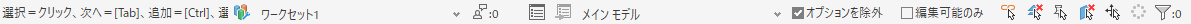 ステータス バーで[ワークセット]コントロールまたは[デザイン オプション]コントロールのみ非表示にするには、対応するチェック ボックスをオフにします。