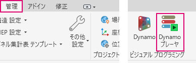 Revit で、[管理]タブ [Dynamo プレーヤ]に移動します。