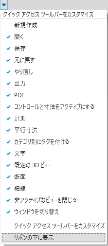 クイック アクセス ツールバーはリボンの上または下に表示することができます。設定を変更するには、クイック アクセス ツールバーで、[クイック アクセス ツールバーをカスタマイズ]ドロップダウン リスト