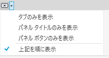 | リボンを最小化する優先方法を指定する | リボン タブの右側で、右矢印をクリックして目的の動作([タブのみを表示]、[パネル タイトルのみを表示]、[パネル ボタンのみを表示]、[すべてを循環])を選択します。
