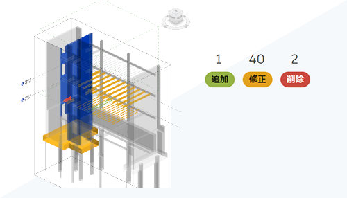 パレットには、追加、修正、削除したオブジェクトの概要が表示されます。これらのオブジェクトはモデル上でもハイライト表示されます。表示しないカテゴリを選択解除して、追加、修正、削除したオブジェクトのみを表示するようにカテゴリをフィルタすることができます。
