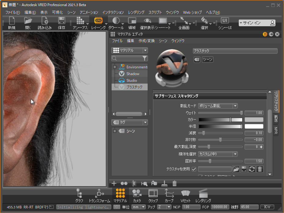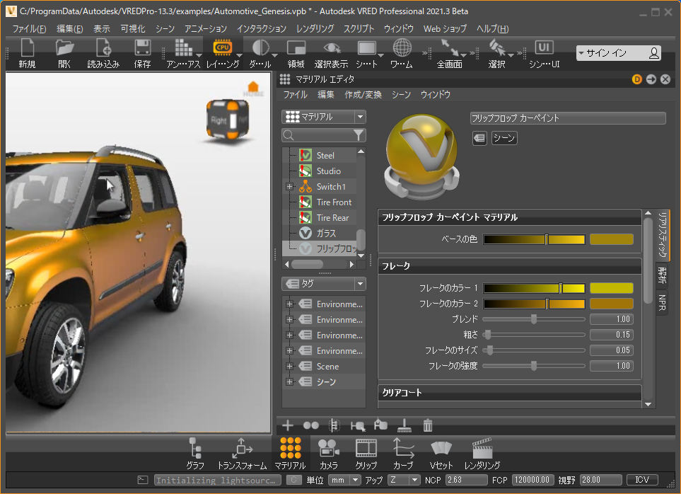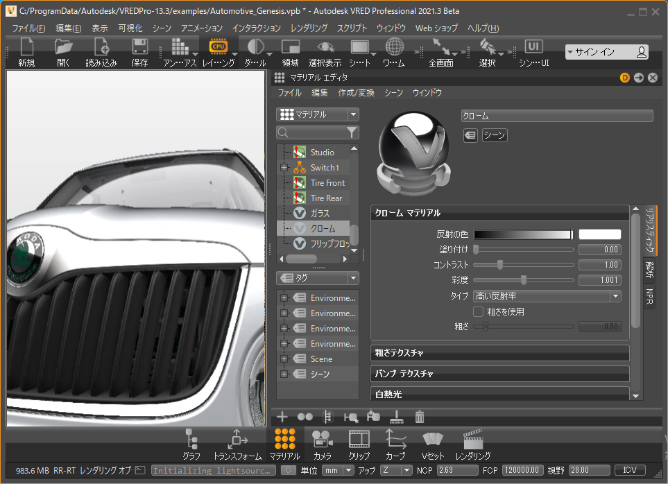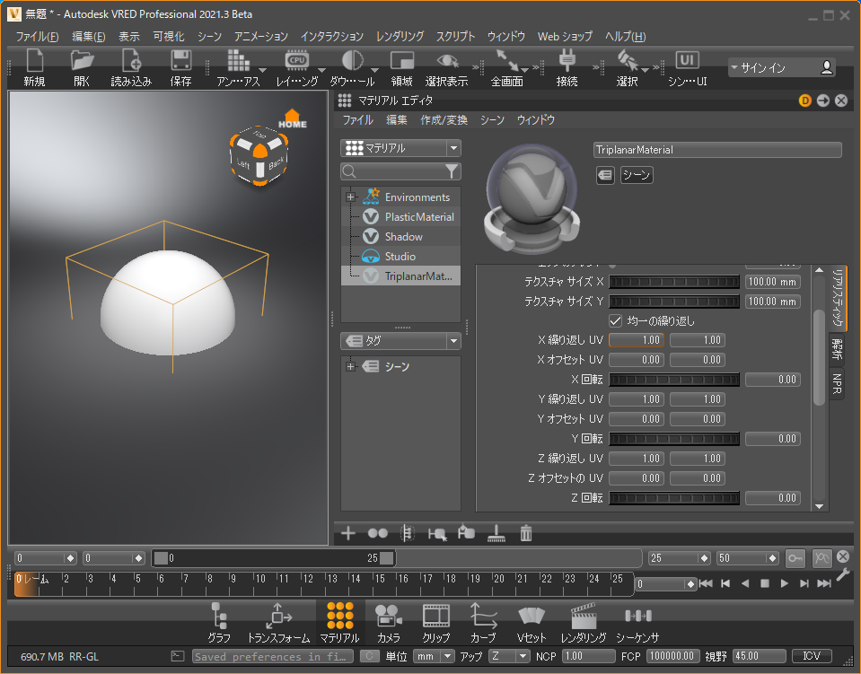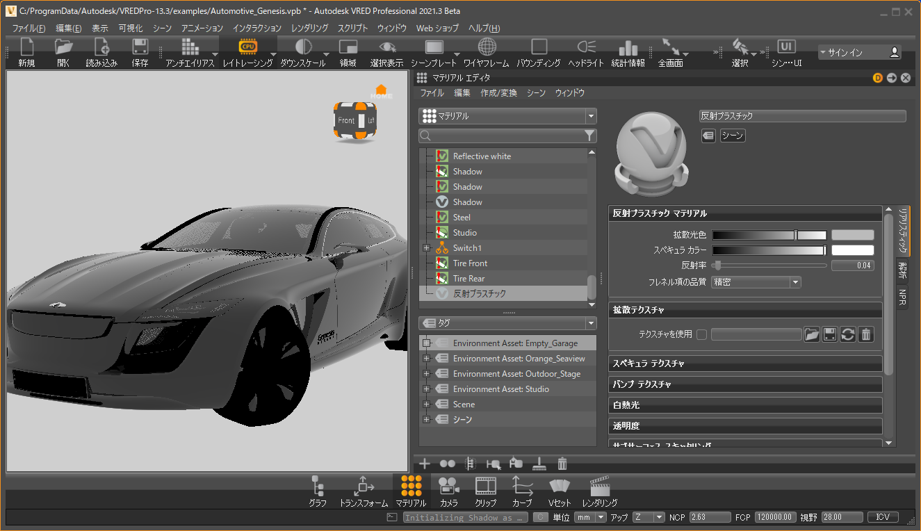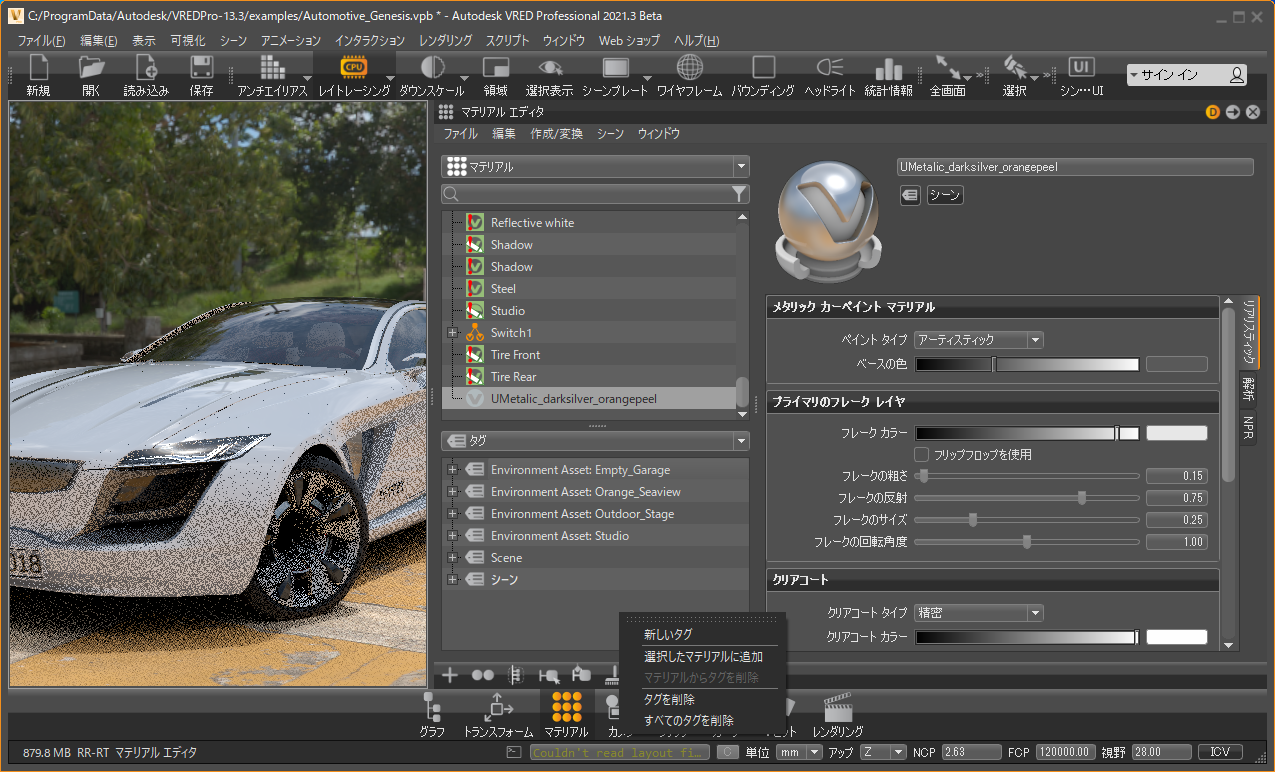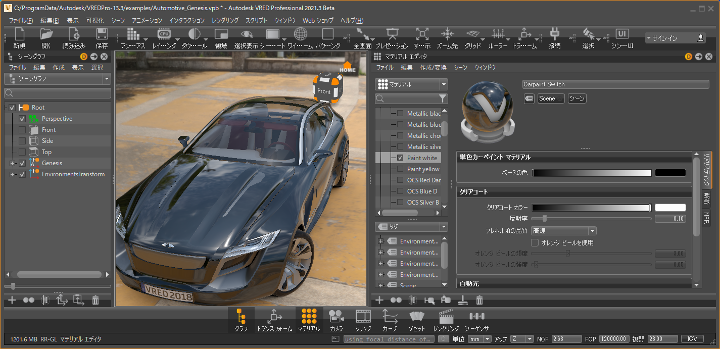 VRED マテリアルおよびマテリアル ツールのリファレンス情報については、「リファレンス」の「 マテリアル 」のセクションおよび「リファレンス」の「 環境 」のセクションを参照してください。
